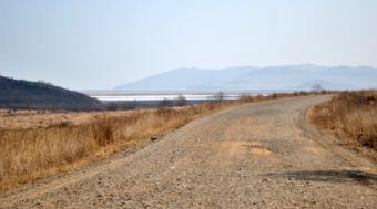 Nina kannte auch einen Fahrer, der mich zum Dreiländereck Russland-Nordkorea-China begleiten konnte. Sergej und ich brachen in den frühen Morgenstunden auf und fuhren einen ganzen Tag lang durch leicht gewellte Hügellandschaften bis an die Grenze zu China und Nordkorea. Unterwegs sammelte ich Bilder, Eindrücke, Stimmen und Geräusche. Außer den Siedlungen für die Familien der Grenzer gab es keine Orte, wir waren in menschenleerer Gegend unterwegs.