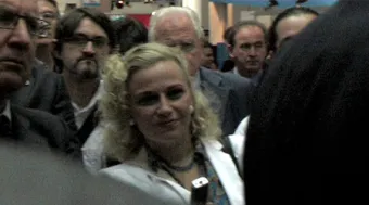 Etwas später, aber vielleicht ist es doch der gleiche Augenblick, erscheint der Autor auf einer Messe. Vor ihm das Publikum, wieder wird diese Geschichte erzählt, knapper hier; wieder tauchen die Sätze der geschriebenen Erzählung vor uns auf dem Schirm auf. Dieses Mal dehnt sich der Text weiter aus, die Messe, Blitzlichter und Menschen bleiben zurück. Für eine Weile sind wir alleine mit dem Text.