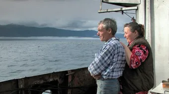 „Ich habe Marina und Sascha auf meiner Recherchereise in Sibirien kennen gelernt. Auf dem Lastkahn Nr. 1315 transportieren sie Kohle von Port Baikal nach Ust-Barguzin. Das halbe Jahr verbringen sie zu zweit auf dem Schiff – "wie auf einer Insel", losgelöst von der russischen Wirklichkeit an Land. Sie genießen die Schönheiten des Baikalsees, die Freiheit auf See und sehnen sich doch nach einem normalen Leben. Denn wie lange sie diese Arbeit noch machen werden, wissen sie nicht. Die Aufträge für Kohle werden immer weniger. Marina und Sascha suchen auf ihre Weise und mit ihren Möglichkeiten nach dem Glück. Das ist es, was ich an vielen Menschen in Russland bewundere: Selbst unter schwierigen Lebensbedingungen erhalten sie sich ihre Kraft und ihren Lebensmut.“