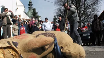 Pruchnik ist ein Dorf im Süden Polens. Bekannt ist es wegen seiner sehenswerten Holzhäuser mit Bogengängen aus dem 19. Jahrhundert. Am Karfreitag gibt es an diesem Ort jedoch ein eher schauerliches Schauspiel zu bestaunen: Junge wie alte Bewohner ziehen eine mit Stroh gefüllte Riesenpuppe durch die Strassen ihres Dorfs. Hin und wieder halten sie an, um dem mit dem Namen Judas 2008 gebranntmarkten Strohmann wuchtige Schläge mit einem Holzstab zu verabreichen. Der Rachefeldzug findet sodann mit der Köpfung und der Verbrennung des fingierten Verräters sein jähes Ende am Dorffluss.