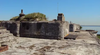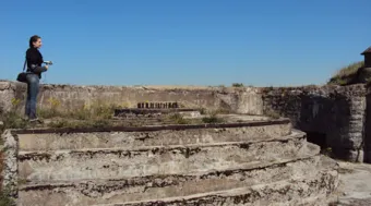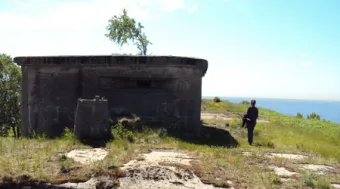 Gewölbe, in denen stets Nacht ist, Kammern, lange Tropfsteintunnel... Darüber zugewucherte Treppen, Geschützterrassen, enge Fensteraugen in klotzigem Beton. Ringsum wassergrauer Horizont, mit fernen Linien Land: Westlich die Insel Kotlin, Sperrgebiet bis 1996, und der nicht unumstrittene Flutschutzdamm. Östlich Sestroretsk und der Wochenendstrand des Rayon 'Kurort'. Nördlich Russlands historischer Feind: Finnland. Mitten im Finnischen Meerbusen, häkchenschmal und 700 Meter lang, liegt die Festung, die Insel - "Totleben". Pittoresk, und doch will sie keiner kennen im nahen St. Petersburg.