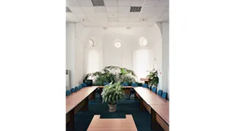Die Arbeit „Ukraine Series“ der Künstlerin Johanna Diehl untersucht die Räume früherer Synagogen in der heutigen Ukraine. Nach der vielfachen Zerstörung durch die deutsche Besatzung wurden diese in der Sowjetunion insbesondere zu Fabriken, Kinos, Sporthallen oder Warenlagern umgewandelt. Seit der Unabhängigkeit der Ukraine wurden nur wenige Synagogen restituiert, viele dieser Orte verbleiben in den Funktionen, verfallen oder werden etwa zu Geschäften, Wohnhäusern, Krankenhäusern umfunktioniert. Die Bilder dieser Serie arbeiten mit den vorgefundenen „Inszenierungen“. Sie verhandeln die Geschichte der Synagogen in der Ukraine als spezifische Kulturräume, in denen sich der Zugriff von Macht auf das Subjekt der jeweils regierenden Ideologie konstituiert. Heute zeigt sich in den ehemaligen Synagogen auch eine globale Realität: in ihnen werden Waren produziert oder zum Kauf angeboten. In anderen wird das sowjetische Erbe erhalten oder mit grellen Farben übermalt, andere finden keine Verwendung mehr. Die ursprünglich nach Osten ausgerichteten Räume zeugen von dem abgeschnitten Faden religiöser und kultureller Identität, von Identitätssuche vor dem Hintergrund eines unbewältigten europäischen Traumas.